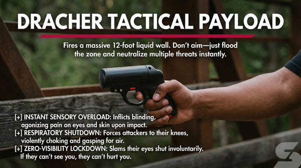 DRACHER ZERO-AIM PEPPER PISTOL: DRAW FAST. STRIKE BLIND. SURVIVE.